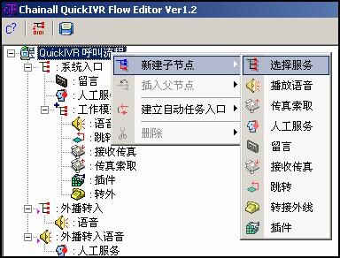 可任意设置流程层次。支持服务选择、语音查询、人工服务、转接座机或手机、留言、跳转;支持人工服务与自动服务互转;支持传真收发(选配);支持TTS(选配);通过插件扩展支持流程和业务系统交互(选配或定制)。